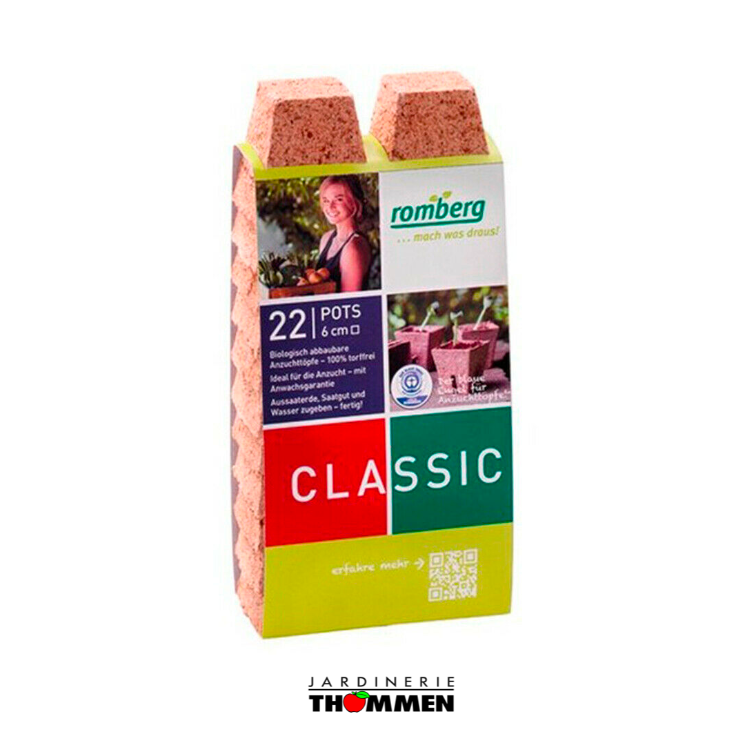 Image précédente Image suivante 22x Pots en tourbe carrés biodégradables Romberg Classic Pots (6cm)