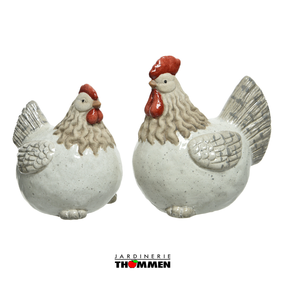 POULE EN TERRE CUITE 2ASS POULE-COQ