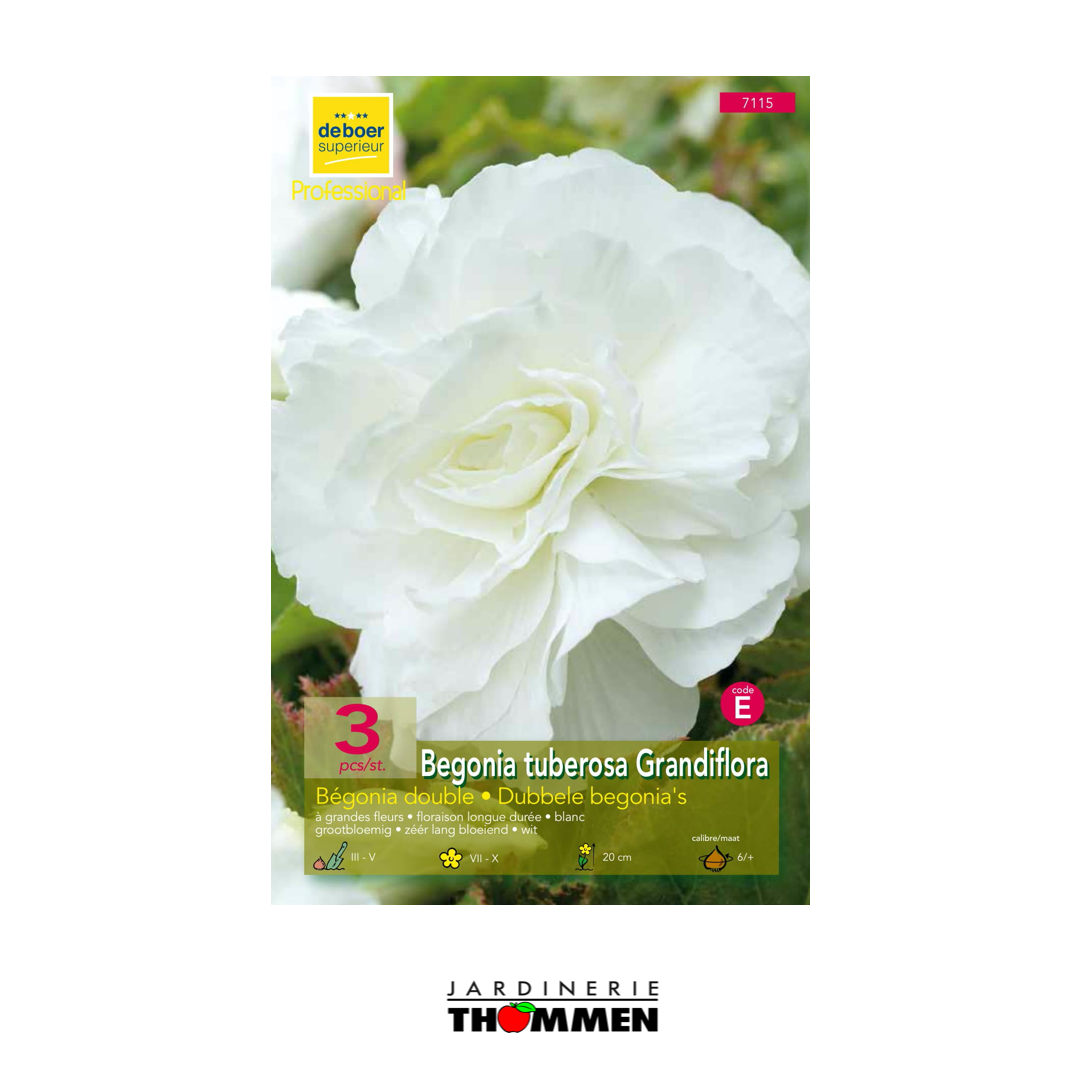 X 3 BEGONIAS DOUBLES BLANCS